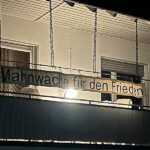 Am 01. November 2025 hängt das Banner wieder und das LED strahlt dieselbe Botschaft aus: „Mahnwache für den Frieden“ !