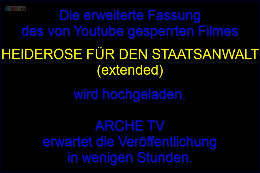 Neuveröffentlichung in der EXTENDED-FASSUNG nach vorausgegangener Sperrung des Filmes „HEIDEROSE FÜR DEN STAATSANWALT – ALLEIN GEGEN DIE WELT“ durch Youtube