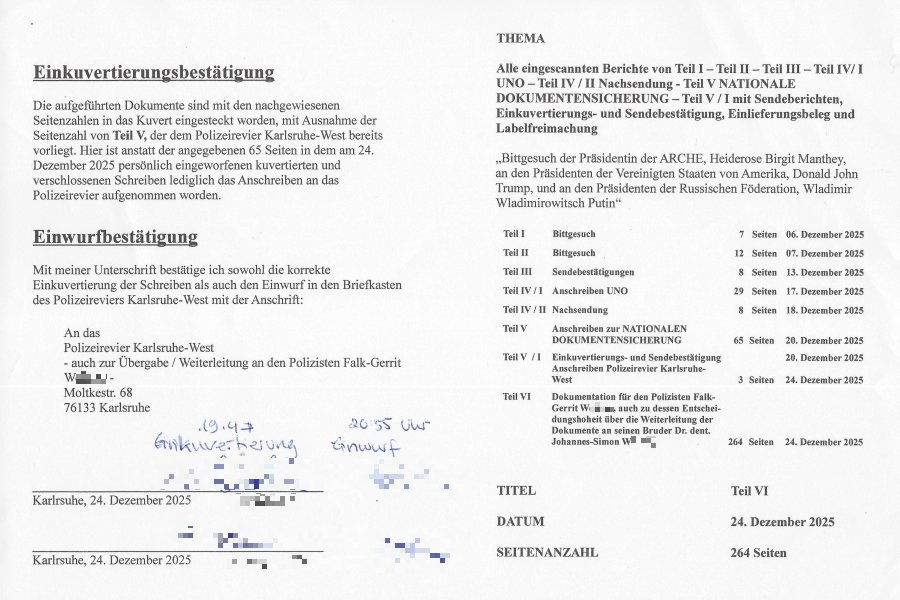 ARCHE an Donald Trump und Wladimir Putin: WIR BRAUCHEN DEN WELTFRIEDEN !